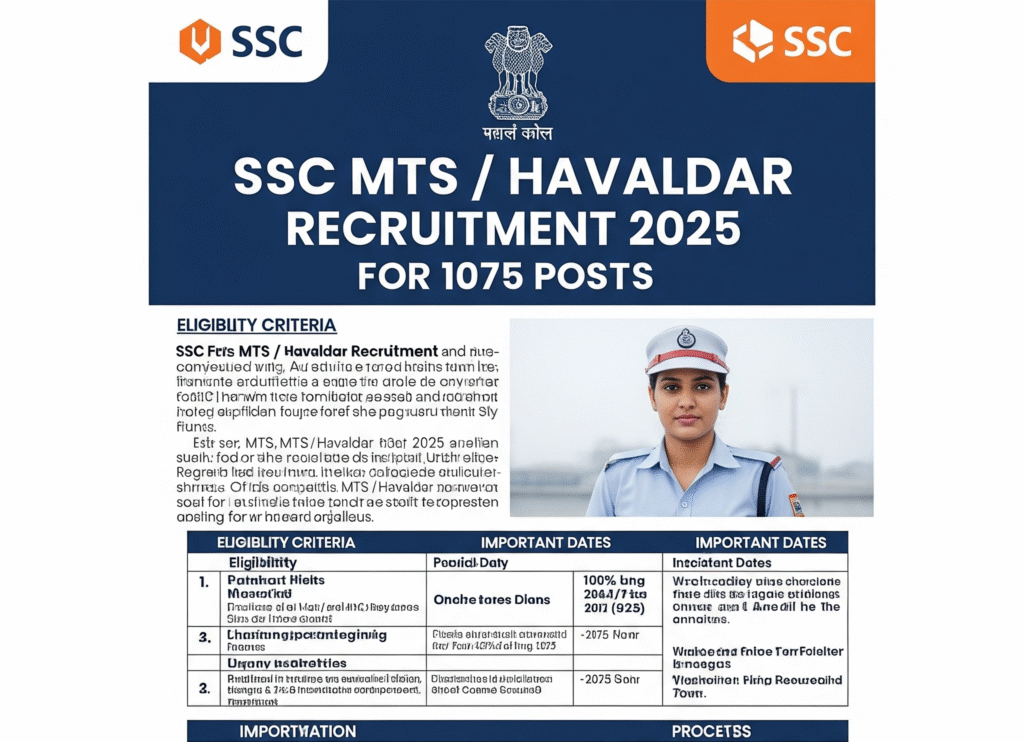 The Staff Selection Commission (SSC) has officially released a notification for the recruitment of Multi Tasking (Non-Technical) Staff and Havildar (CBIC & CBN). The application window is now open, with submissions accepted from June 26, 2025, to July 24, 2025.